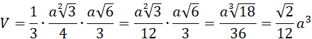 Stworzono bryłę zbudowaną z czworościanu foremnego oraz ostrosłupów doklejonych do każdej z jego ścian. Wiedząc, że objętość tej bryły jest trzy razy większa od objętości samego czworościanu wyznacz wysokość ostrosłupów.