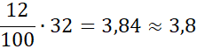 Pomnóż liczbę 32 razy 12 i podziel przez 100, następnie zaokrąglij wynik do części dziesiętnych. Teraz skorzystaj ze wzoru na błąd względny. Zaokrąglij wynik 0,01041(6) do części dziesięciotysięcznych.