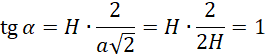 Wyznacz miarę kąta alfa z tangensa (iloraz wysokości do połowy przekątnej podstawy).