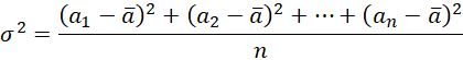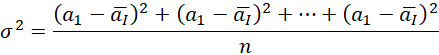 We wzorze n to liczba pomiarów, „a” to pomiar, natomiast