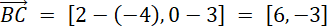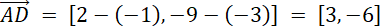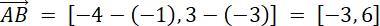 Najpierw musisz skonstruować podane wektory, odejmując od siebie współrzędne punktu początkowego od współrzędnych punktu końcowego: