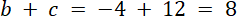 A. b + c = 8