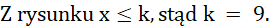 W tym zadaniu należy określić wartość parametru k, takiego, że przedział przedstawiony na rysunku, jest zbiorem rozwiązań nierówności