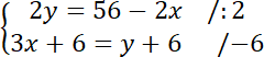 Wyznacz długości boków wyjściowego prostokąta, jeśli jego obwód jest równy 56 cm i gdyby zwiększyć długość jednego jego boku o 2 cm, a drugiego o 6 cm, to proporcja między długościami boków otrzymanego prostokąta wynosiłaby 1 : 3.
