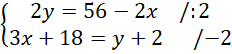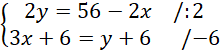 Wyznacz długości boków wyjściowego prostokąta, jeśli jego obwód jest równy 56 cm i gdyby zwiększyć długość jednego jego boku o 2 cm, a drugiego o 6 cm, to proporcja między długościami boków otrzymanego prostokąta wynosiłaby 1 : 3.