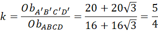 Wyznacz skalę podobieństwa obu figur, jeśli prostokąt A’B’C’D’ przedstawiony na rysunku jest podobny do prostokąta ABCD, a obwód pierwszego z nich jest równy