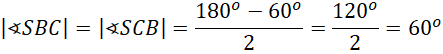 Trójkąt SBC jest równoramienny, więc miary kątów przy podstawie są takie same: