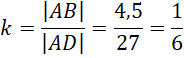 Następnie wyznacz skalę podobieństwa powyższych trójkątów. Skorzystaj z tego, że jest ona stosunkiem odpowiadających sobie boków w trójkątach podobnych i ją oblicz.
