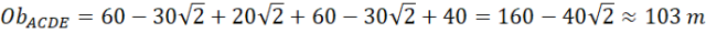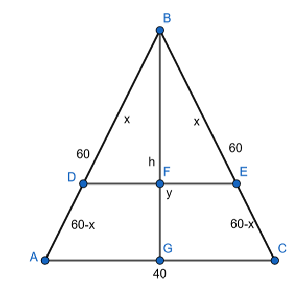 Wyznacz z dokładnością do 1 m obwód każdej z powstałych działek, jeśli działkę budowlaną w kształcie trójkąta o bokach długości: 60 m, 60 m i 40 m podzielono na dwie części o równych polach płotem równoległym do boku długości 40 m.