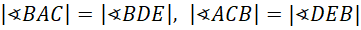 Oznacza to, że trójkąty ABC i DBE są podobne z cechy KKK – odpowiadające sobie kąty mają równe miary.