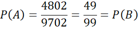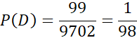 D – suma wylosowanych liczb jest równa 100, jeśli spośród liczb jeden, 1, 2, 3, …,99 losujemy jedną liczbę, a następnie z pozostałych– drugą.