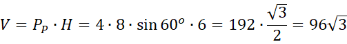 Na tej podstawie oblicz objętość bryły korzystając ze wzoru na pole równoległoboku z sinusem.