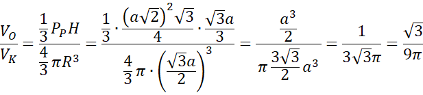 Wyznacz stosunek objętości ostrosłupa do objętości kuli na nim opisanej, jeśli ściany boczne ostrosłupa prawidłowego trójkątnego są trójkątami prostokątnymi.