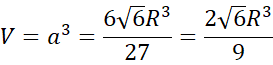 Oblicz największą możliwą objętość sześcianu zawartego w półkuli o promieniu R.