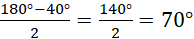 Trójkąt ABC jest równoramienny z podstawą AB. Suma miar kątów w trójkącie to 180 stopni. Zatem kąt CAB = ABC =