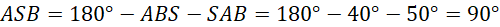 W trójkącie ABS miara kątów to 180 stopni. Zatem