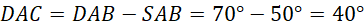 Trójkąt ABD jest równoramienny z podstawą AB. Suma miar kątów w trójkącie to 180 stopni. Zatem kąt DAB = ADB =