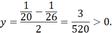 Oceń prawdziwość zdań o rozwiązaniu układu: 20x+20y=1 oraz 26x-26y=1.