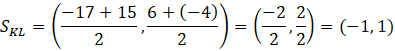 Skorzystaj ze wzoru na środek odcinka i oblicz współrzędne środka KL.