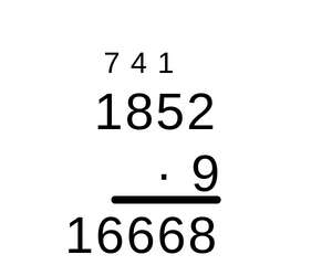 Liczbę metrów w jednej mili morskiej pomnóż przez liczbę przepłyniętych mil, by obliczyć przepłyniętą odległość wyrażoną w metrach. Wykonując mnożenie pisemne przez liczbę jednocyfrową, należy najpierw pomnożyć liczbę jednocyfrową, przez cyfrę jedności większej liczby. Jeśli otrzymana liczba jest dwucyfrowa, należy cyfrę jedności takiego wyniku zapisać pod słupkiem cyfr jedności, a cyfrę dziesiątek z wyniku trzeba przenieść dalej poprzez dopisanie tej cyfry nad kolejnym w lewo słupkiem, czyli słupkiem cyfr dziesiątek. Przy mnożeniu kolejnego słupka, do wyniku dodaje się przeniesioną cyfrę ze słupka wcześniej. W taki sam sposób należy mnożyć każdą kolejną cyfrę większej z liczb zaczynając od lewej i idąc do prawej. Jeśli w ostatnim słupku wyjdzie liczba większa od 10, to już nie wolno przenosić dalej, bo nie ma kolejnego słupka, lecz należy napisać całą liczbę.