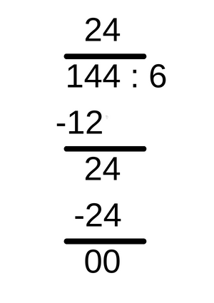 Podziel liczbę wszystkich szklanek, jakie przywieziono do sklepu przez liczbę szklanek, jaka znajdowała się w jednym pudełku, by dostać liczbę przywiezionych pudełek. Wykonując dzielenie pisemne, należy najpierw podzielić pierwszą cyfrę od lewej dzielnej przez dzielnik. Jeśli jednak dzielnik nie zmieściłby się w pierwszej cyfrze dzielnej od lewej, to należy wziąć pierwsze dwie cyfry dzielnej i wtedy podzielić je przez zielnik. Wynik z takiego dzielenia należy zapisać nad ostatnią cyfrą dzielnej, która była brana pod uwagę przy obliczeniach. Następnie zapisaną na górze w wyniku cyfrę należy pomnożyć przez dzielnik i zapisać pod liczbami, które dzielono wcześniej i wykonać odejmowanie. Wynik z odejmowania należy zapisać pod tymi liczbami i dopisać do niego kolejną cyfrę z dzielnej, jaka jest w kolejności i powtórzyć te same kroki co wcześniej podczas dzielenia. Dzielenie wykonuje się tak długo, aż nad cyfrą jedności dzielnej będzie w wyniku jakaś cyfra.