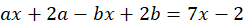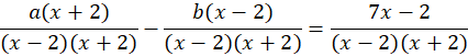 Przyrównaj do siebie oba wyrażenia i sprowadź je do wspólnego mianownika. Mając równe mianowniki i odpowiednie założenia, można przyrównać do siebie same liczniki. Posortuj po lewej stronie liczby z x i liczby bez x, a następnie utwórz układ równań. Wyznacz a i b.