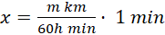 Załóżmy, że motocyklista przejechał w ciągu h godzin dystans m kilometrów. Wyznacz dystans, który pokonywał on średnio w ciągu jednej minuty.