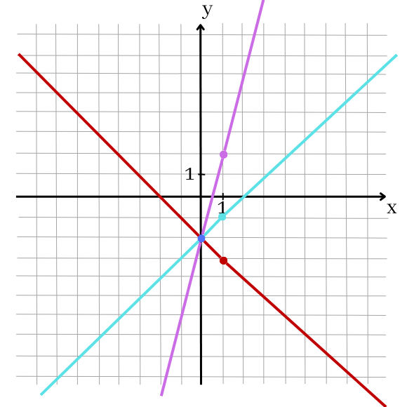 W tym zadaniu musisz podać wzory trzech funkcji liniowych, które przecinają się w punkcie (0, -2) i musisz narysować te wykresy.