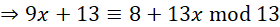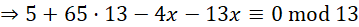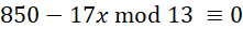 . Następnie badamy reszty z dzielenia przez 13 by wyznaczyć wzór ogólny liczb naturalnych spełniających to równanie. Wyobraźmy sobie wyrażenie