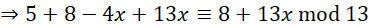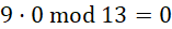 Każda wielokrotność trzynastki jest zawsze podzielna bez reszty przez trzynaście, więc jest kongruentna z zerem.