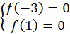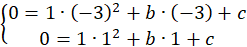 Odczytaj ze wzoru funkcji, że a = 1. Stwórz układ równań, podstawiając do wzoru funkcji punkty (-3, 0) i (1, 0).