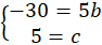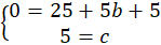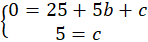 Odczytaj ze wzoru funkcji, że a = 1. Stwórz układ równań, podstawiając do wzoru funkcji punkty (0, 5) i (5, 0).