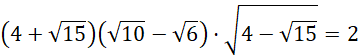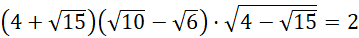 przed pierwiastek. Jak już uprościsz oba wyrażenia, wymnóż je ze sobą. Zobaczysz wtedy, że wynik wyrażenia jest równy 2.