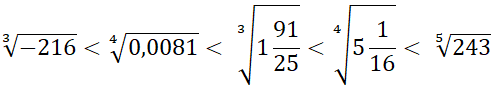 Dokonaj obliczeń, używając znajomości działań na pierwiastkach, a następnie uszereguj je rosnąco.