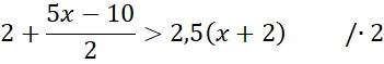 Całą nierówność pomnóż przez 2, następnie przenieś wszystkie wartości z