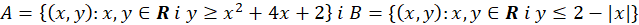 Wyznacz najpierw zbiory A i B. Kolejno narysuj je oba w jednym układzie współrzędnych. Część, gdzie nachodzą one na siebie to zbiór