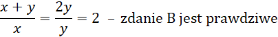 A. odcinek, który jest suma odcinków. x i y, jest dwa razy dłuższy niż odcinek x,