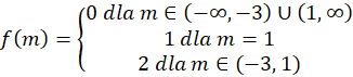 Wyznacz wzór funkcji f i naszkicuj jej wykres, wiedząc, że funkcja f przyporządkowuje każdej wartości parametru m liczbę rozwiązań równania