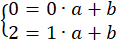 Oblicz b z pierwszego równania, podstaw do drugiego równania i oblicz a: