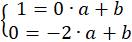 Oblicz b z pierwszego równania, podstaw do drugiego równania i oblicz a: