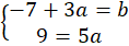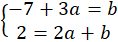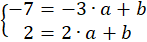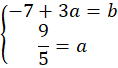 Oblicz b z pierwszego równania, podstaw je do drugiego równania i oblicz a:
