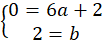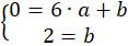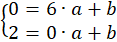 Zauważ, że do wykresu funkcji należą punkty (0, 2) i (6, 0). Ułóż układ równań i oblicz wartości współczynników a i b: