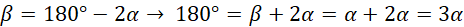 Kąt beta jest również kątem dopełniającym do 180° względem kąta 2 alfa: