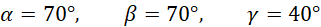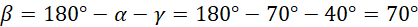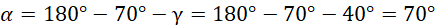 Kąt alfa jest kątem odpowiadającym do kąta (180° – 70° – gamma):