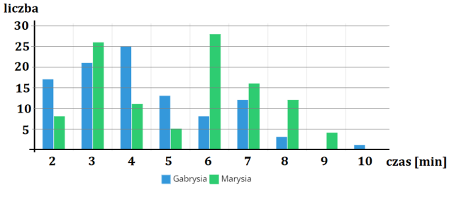 W tabeli masz podane czasy rozmów dwóch sióstr. Masz zilustrować te dane na diagramie, a następnie obliczyć średni czas rozmowy i odchylenie standardowe czasu rozmowy dla każdej z dziewczynek. Wyniki masz podać w zaokrągleniu do pełnych minut.