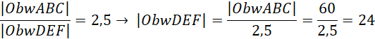 Musisz obliczyć szukany obwód trójkąta DEF za pomocą proporcji.