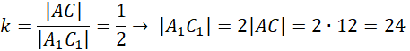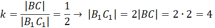 Musisz obliczyć szukane długości boków trójkąta A1B1C1 za pomocą proporcji.