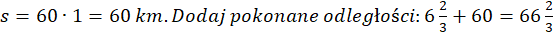 W tym zadaniu musisz odczytać z wykresu, ile kilometrów pokonał Wojtek w czasie całej podróży, wiedząc, że pierwsze jechał rowerem, potem czekał na pociąg, a na końcu jechał pociągiem.