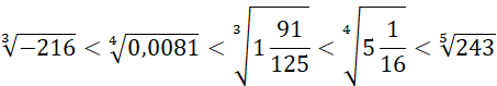 , gdzie a to dowolna liczba rzeczywista, a n to dowolna liczba naturalna. Oblicz podane pierwiastki przez znalezienie potęgi danego stopnia pod pierwiastkami. Jeżeli masz problem z wyznaczeniem tych potęg, skorzystaj z kalkulatora. Kiedy już obliczysz wartości podanych pierwiastków, ułóż je w kolejności rosnącej.