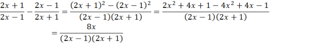 Sprowadź ułamki do wspólnego mianownika i doprowadź do najprostszej postaci. Podaj dziedzinę, wiedząc, że mianownik musi być różny od zera.